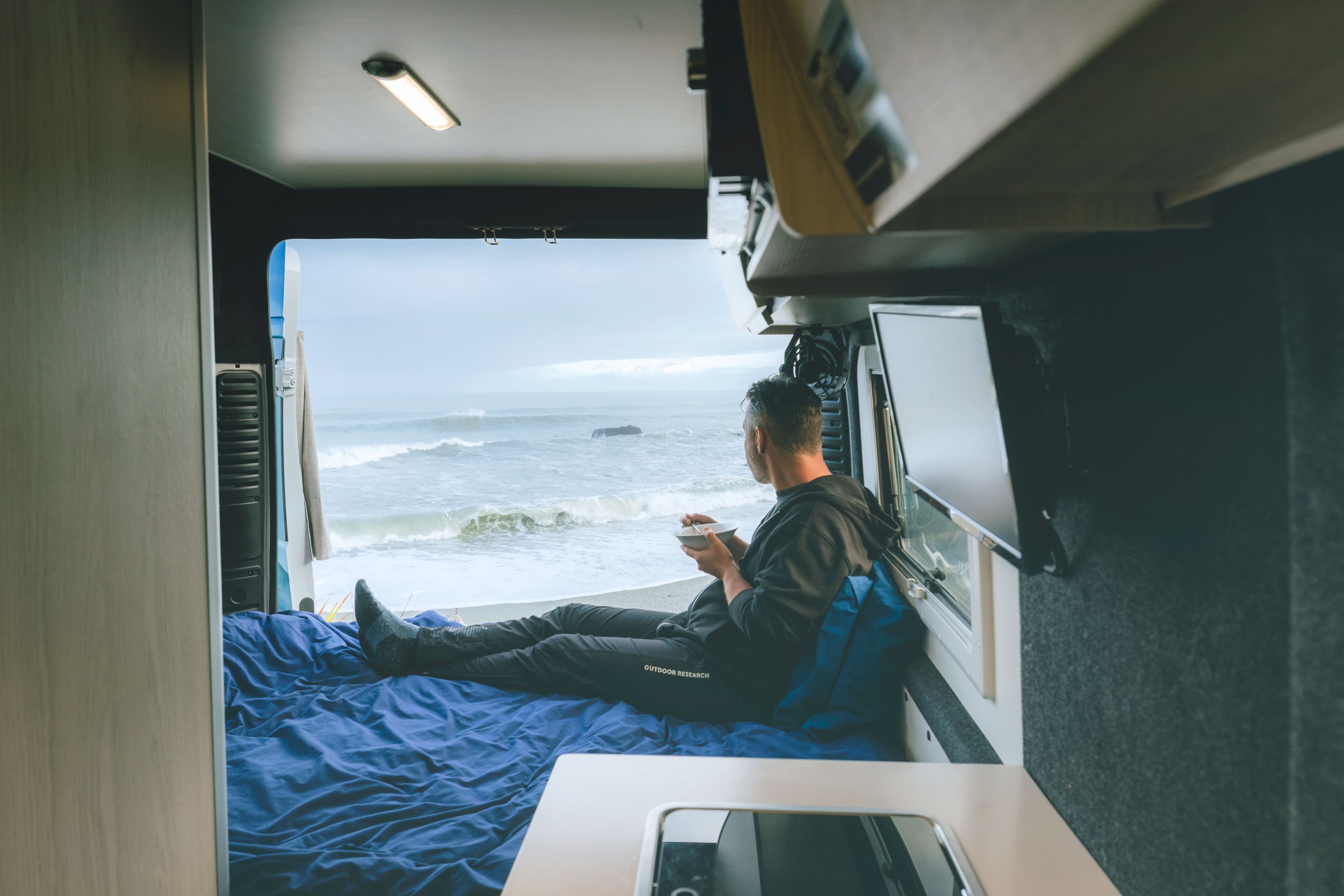 We stayed at the Woodpecker Bay Freedom Camping site, where we parked up right by the sea. Falling asleep with the waves just outside our door was pure magic.